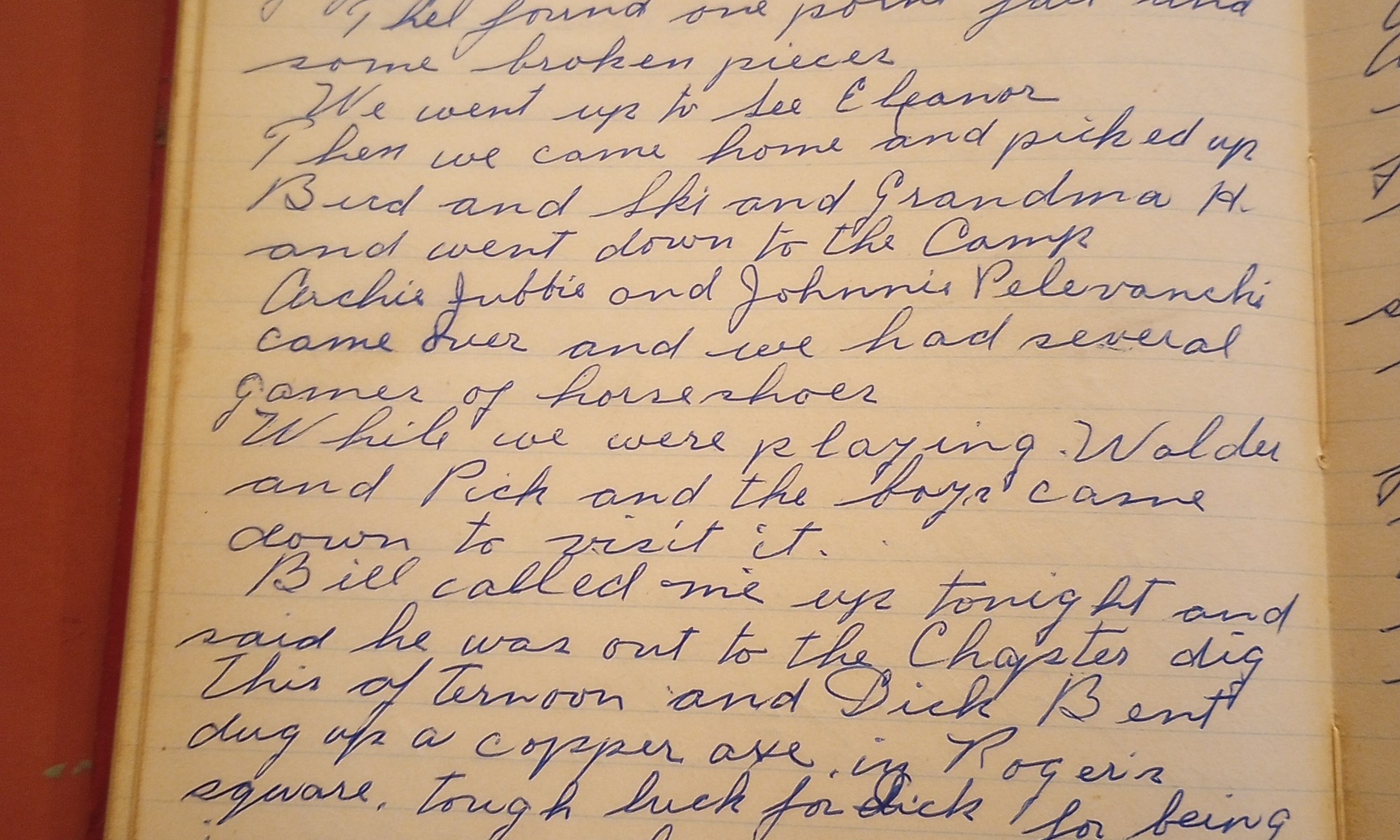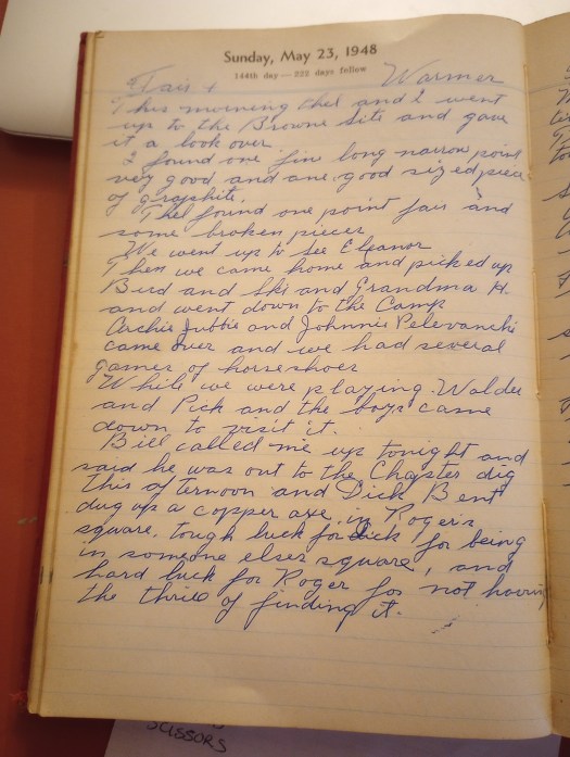 Bill called me up tonight and said he was out to the Chapter dig this afternoon and Dick Bent dug up a copper axe in Roger’s square. Tough luck for Dick for being in someone else’s square, and hard luck for Roger not having the thrill of finding it.