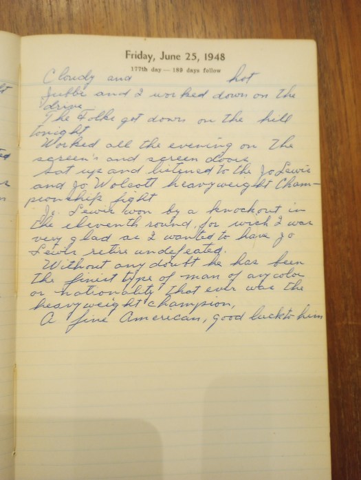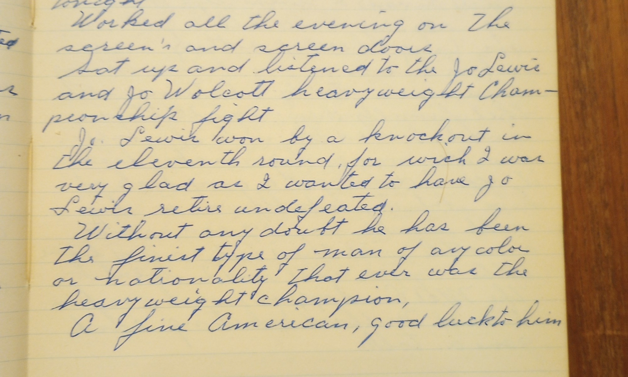 Sat up and listened to the Joe Lewis and Joe Wolcott heavyweight championship fight.