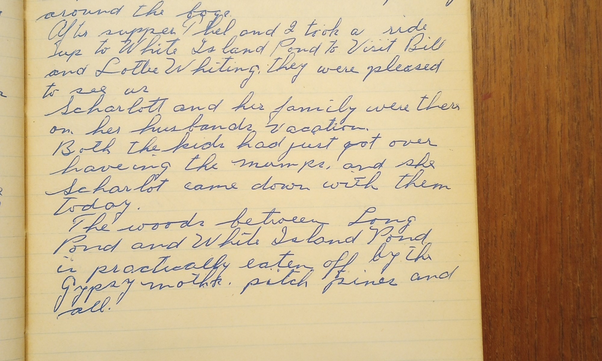 After supper Thel and I took a ride up to White Island Pond to visit Bill and Lottie Whiting. They were pleased to see us.
