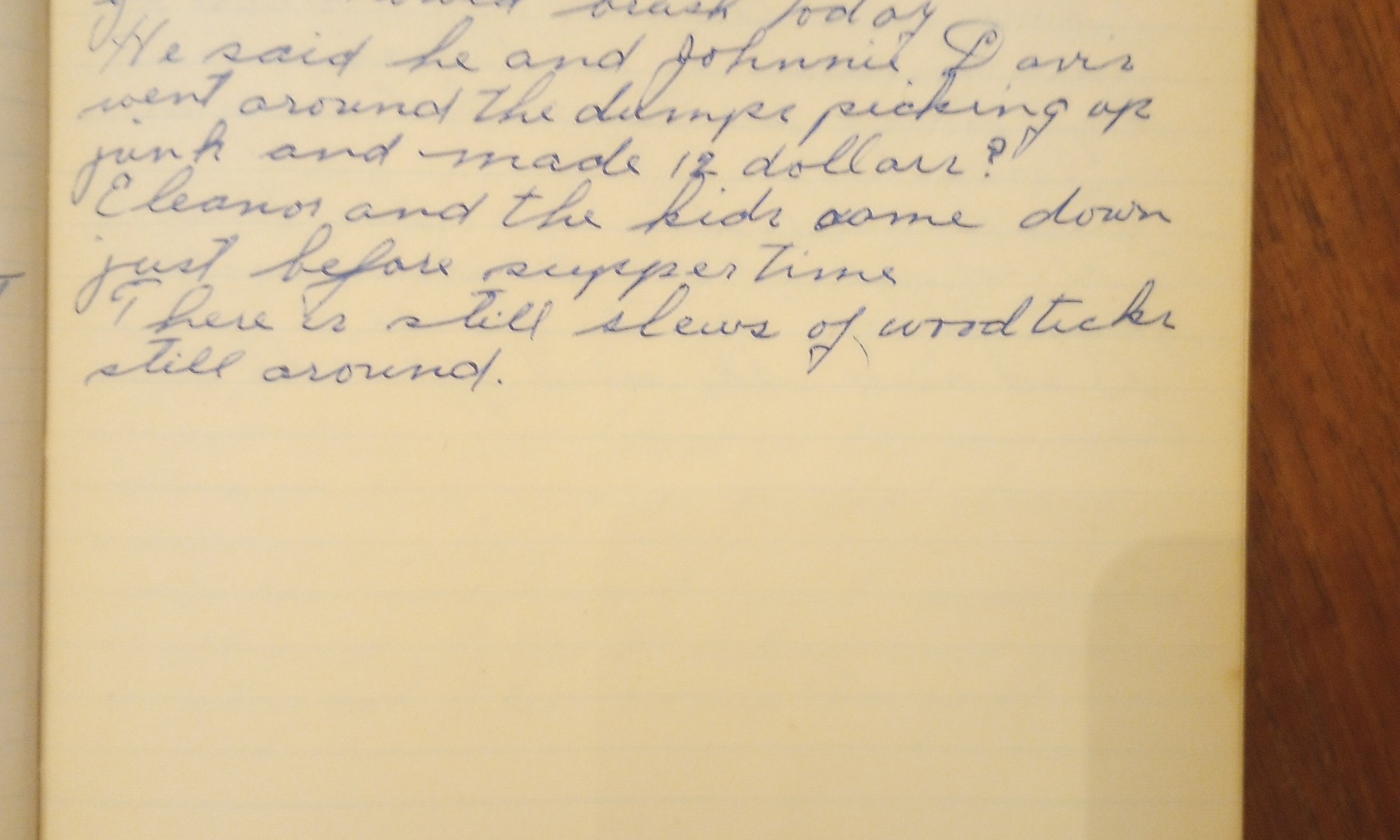 He said he and Johnnie Davis went around the dumps picking up junk and made 12 dollars?