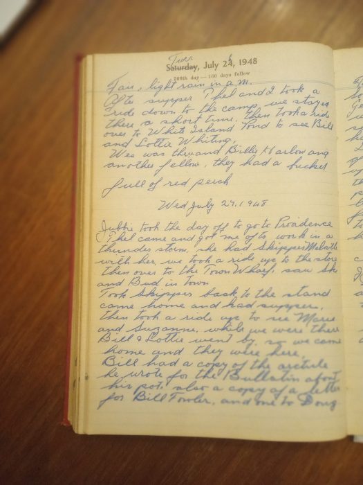 After supper Thel and I took a ride down to the camp. We stayed there a short time, then took a ride over to White Island Pond to see Bill and Lottie Whiting.