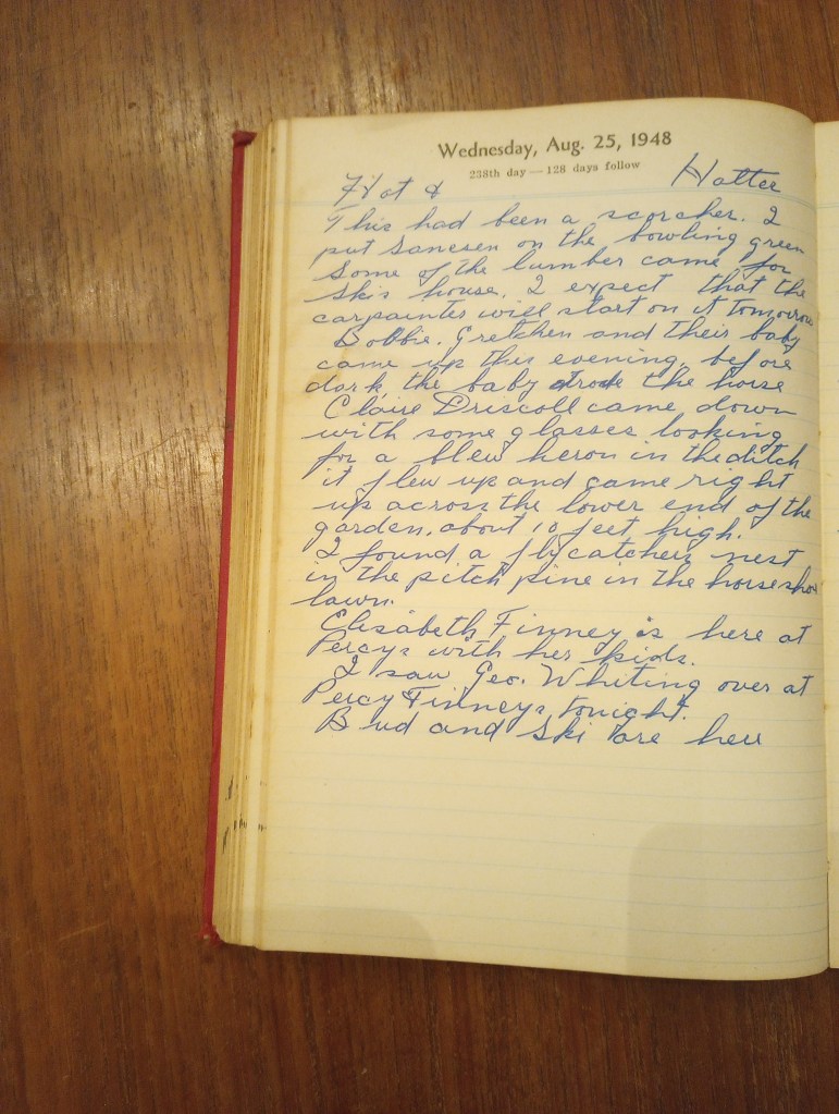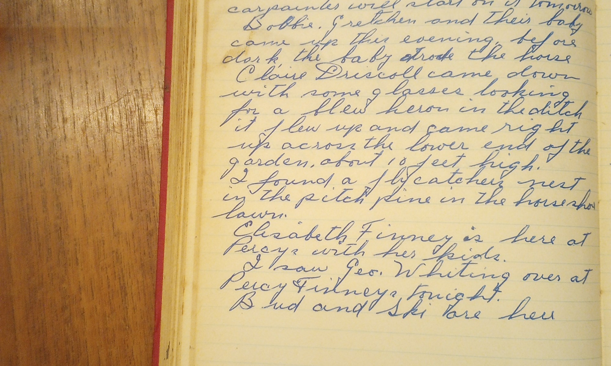 I found a flycatcher nest in the pitch pine in the horseshoe lawn.