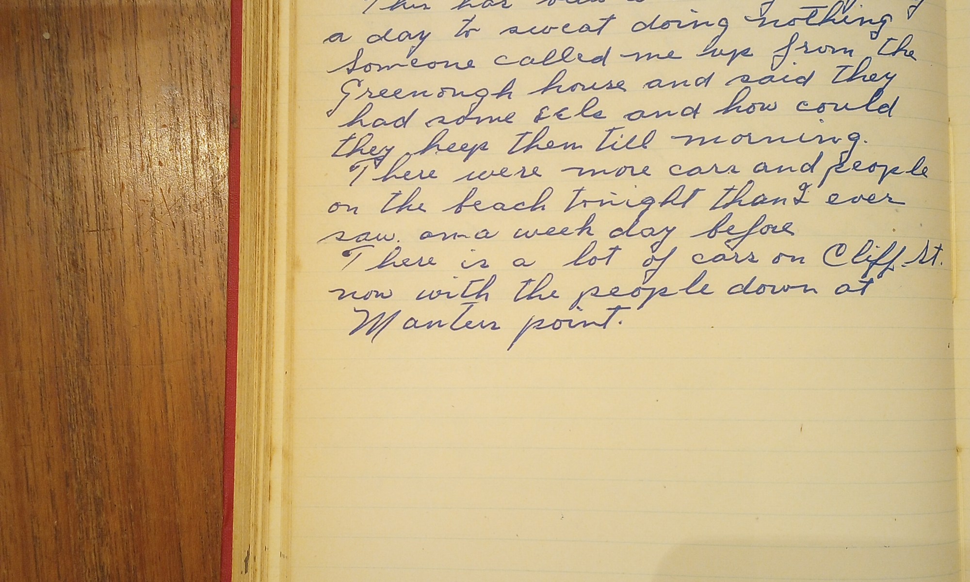 There is a lot of cars on Cliff St. now with the people down at Manter’s Point.