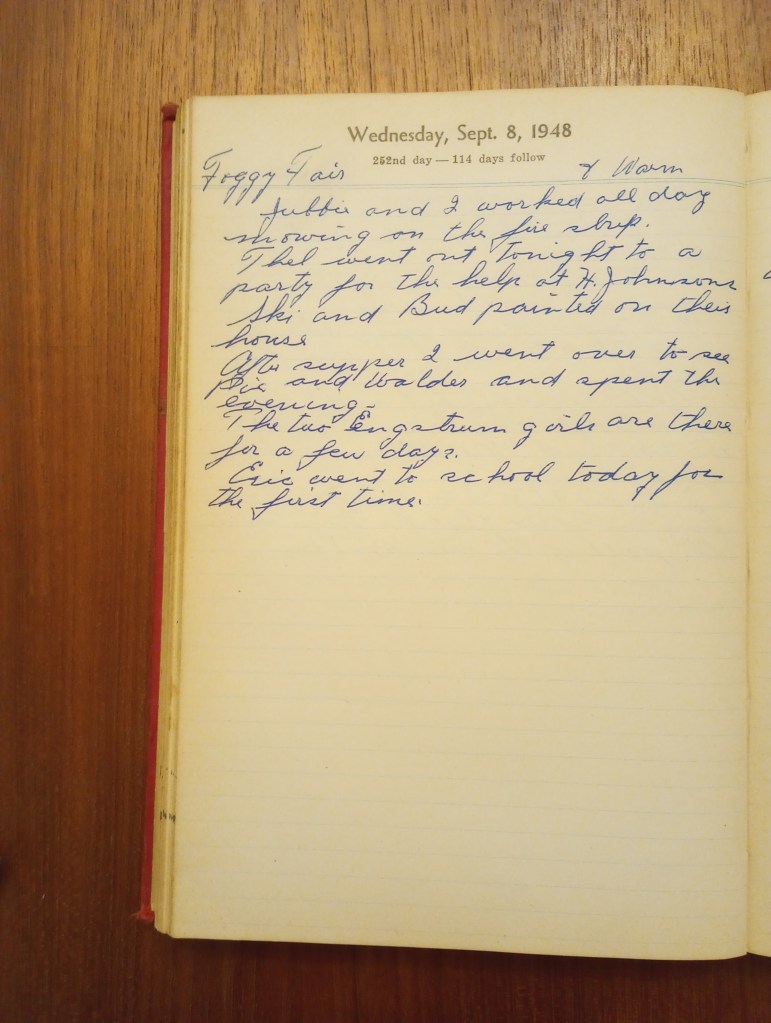 Thel went out tonight to a party for the help at H. Johnson’s.