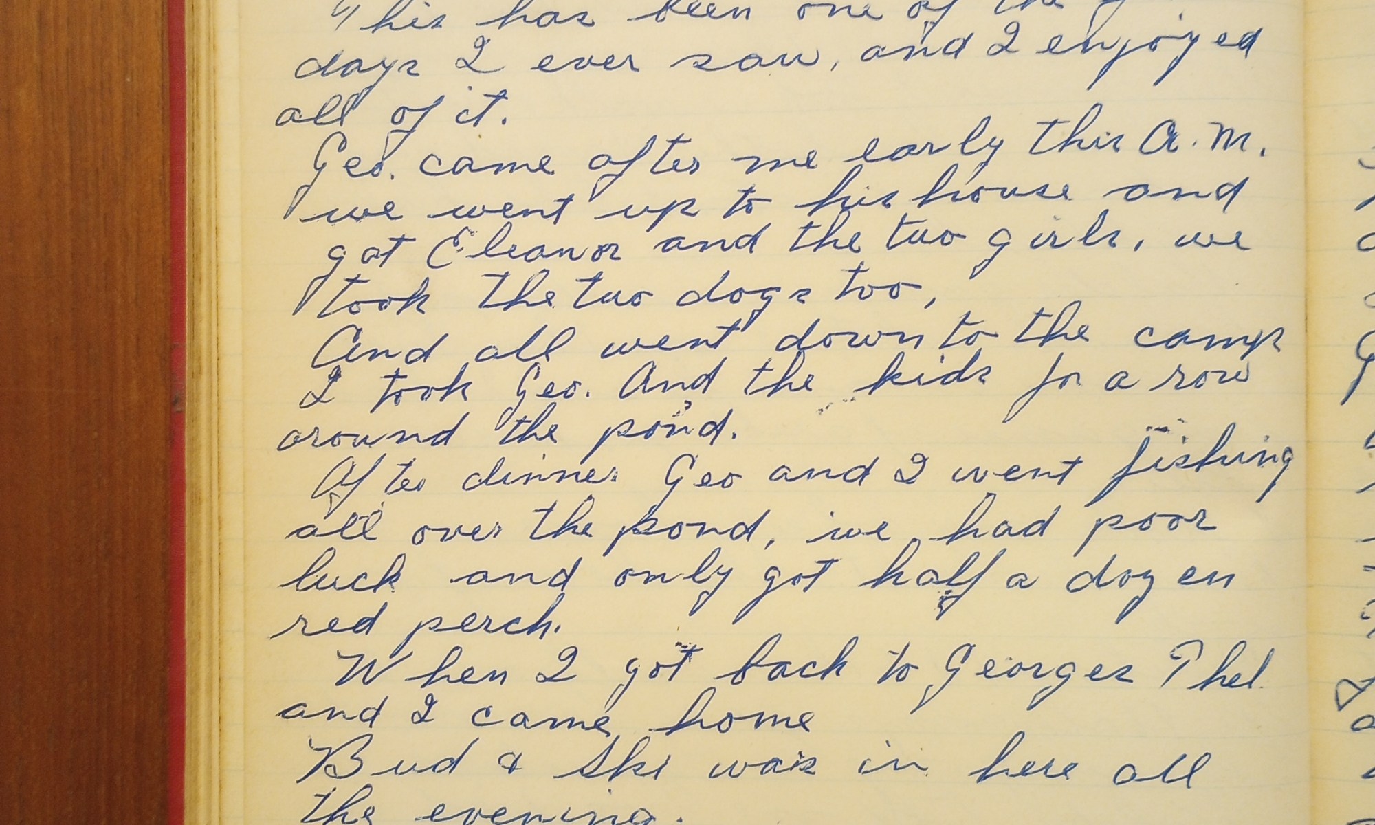George came after me early this A.M. We went up to his house and got Eleanor and the two girls. We took the two dogs too, and all went down to the camp. I took Geo. and the kids for a row around the pond.