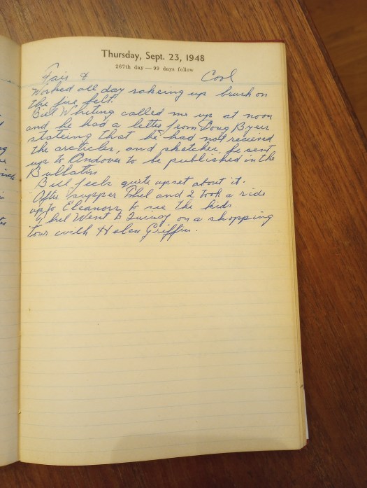Bill Whiting called me up at noon and he had a letter from Doug Byers stating that he had not received the articles and sketches he sent up to Andover to be published in the Bulletin.