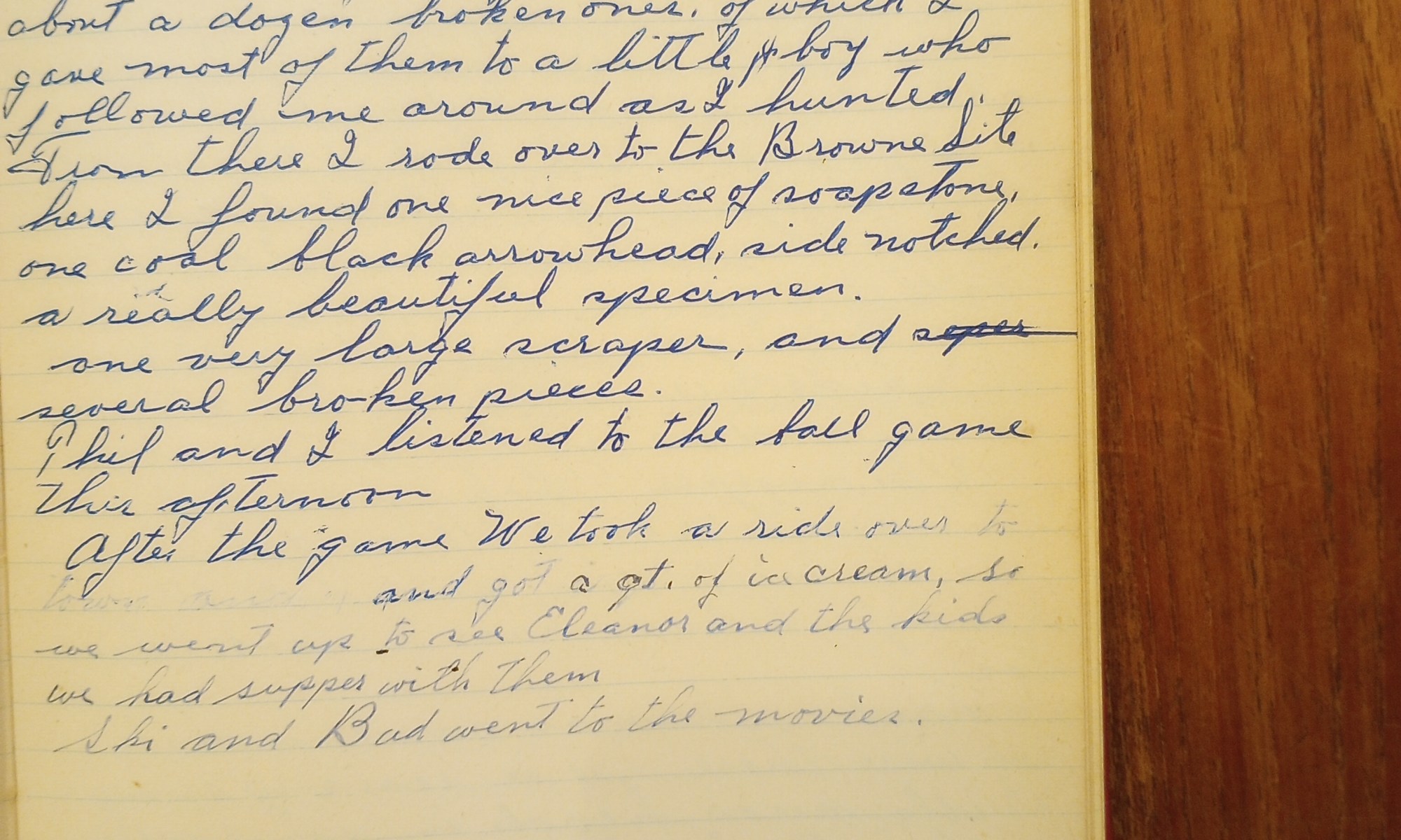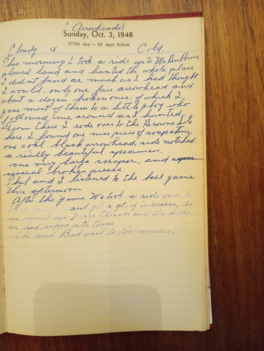 This morning I took a ride up to Mr. Bubbins’ plowed land and hunted the whole place. I didn’t find as much as I had thought I would, only one fair arrowhead and about a dozen broken ones, of which I gave most of them to a little boy who followed me around as I hunted.