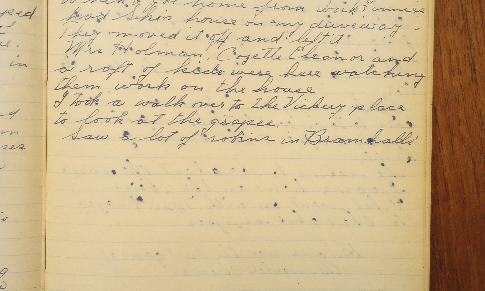 Mrs. Holman, Cozette, Eleanor, and a raft of kids were here watching them work on the house.