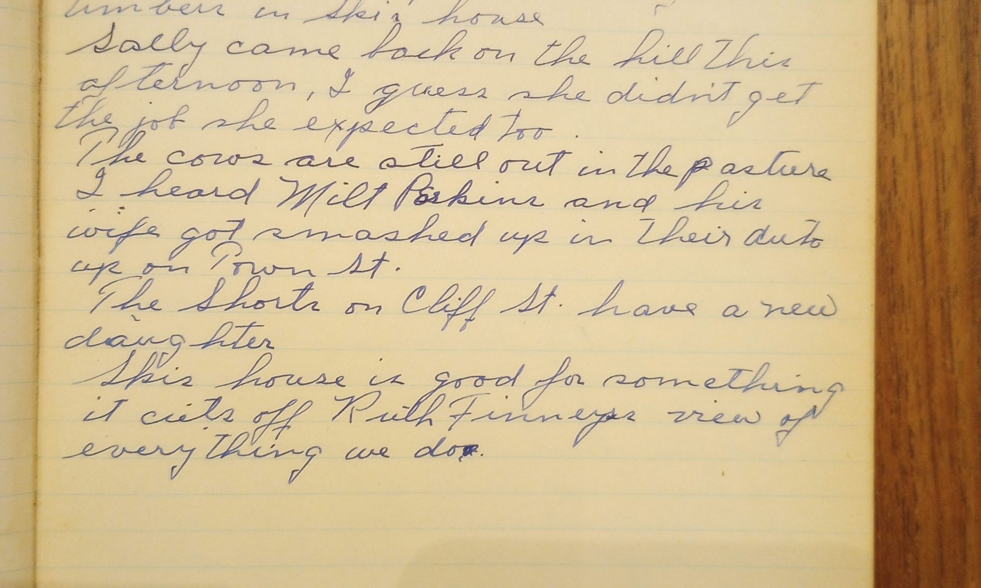 Ski’s house is good for something. It cuts off Ruth Finney’s view of everything we do.