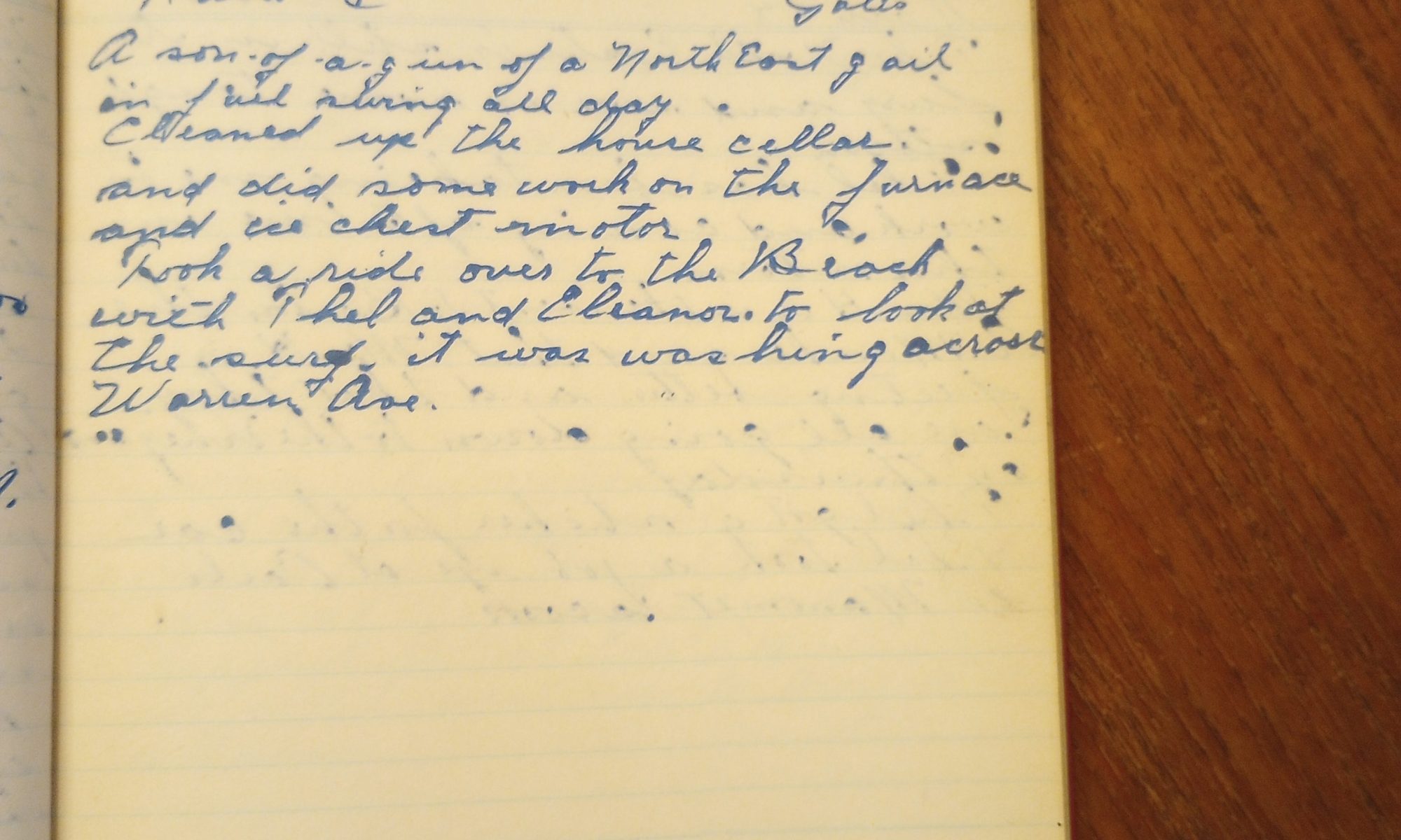 Took a ride over to the beach with Thel and Eleanor to look at the surf. It was washing across Warren Ave.