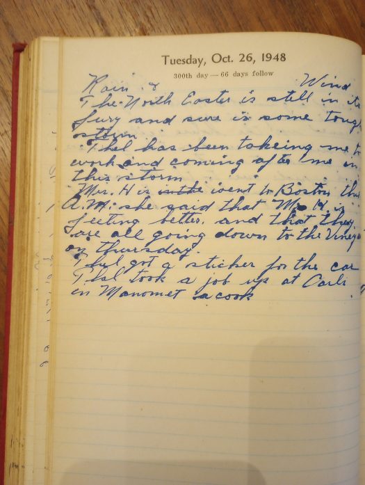 Mrs. H went to Boston this A.M. She said that Mr. H. is feeling better and are all going down to the Vineyard onThursday.