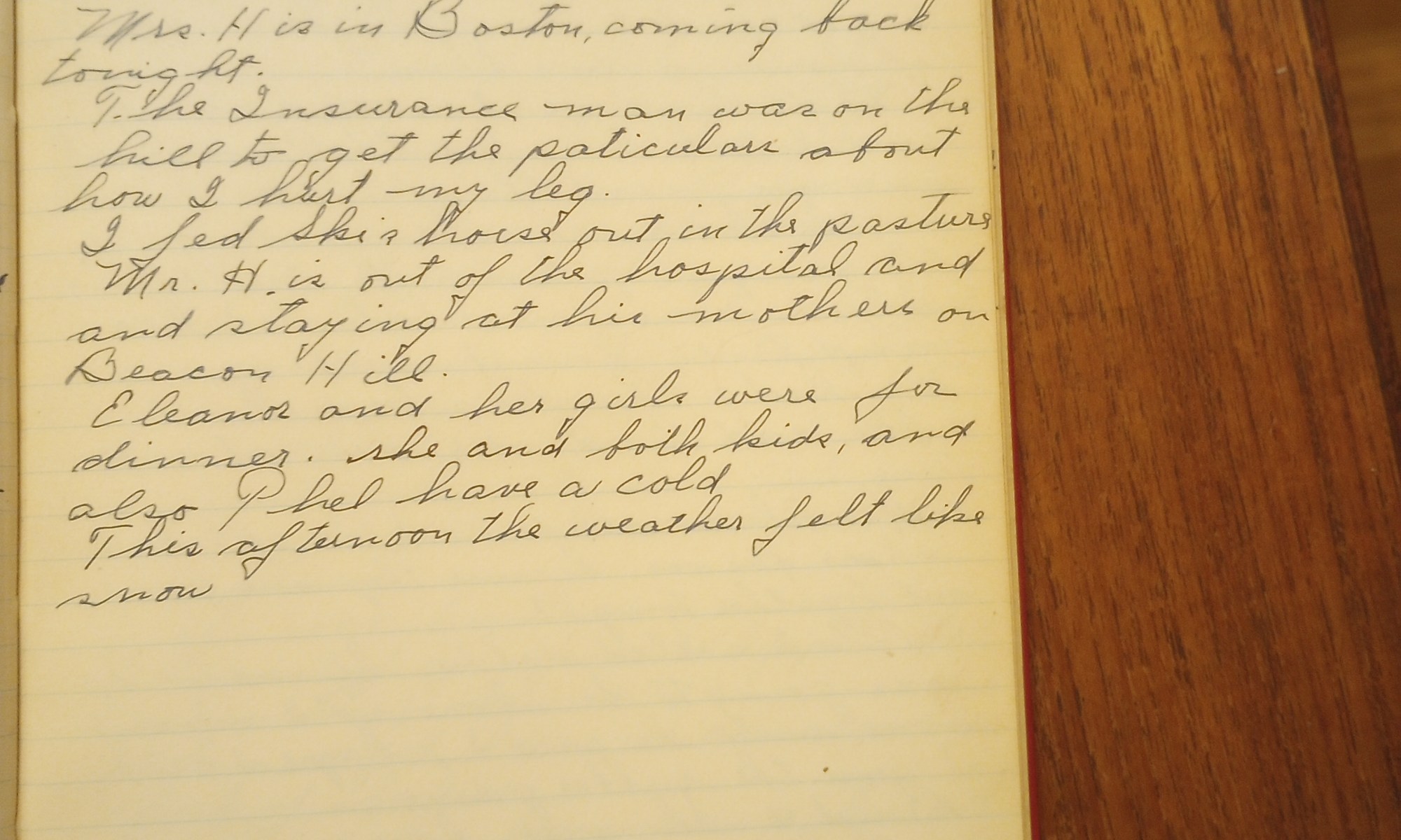 Mr. H. is out of the hospital and staying at his mother’s on Beacon Hill.