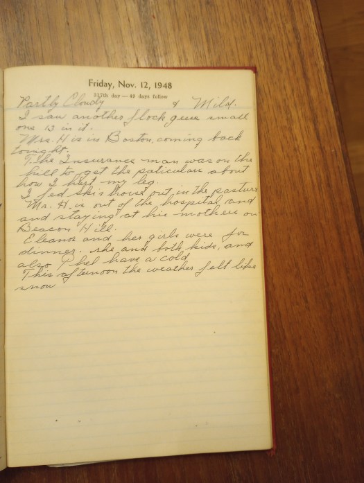 The insurance man was on the hill to get the particulars about how I hurt my leg.