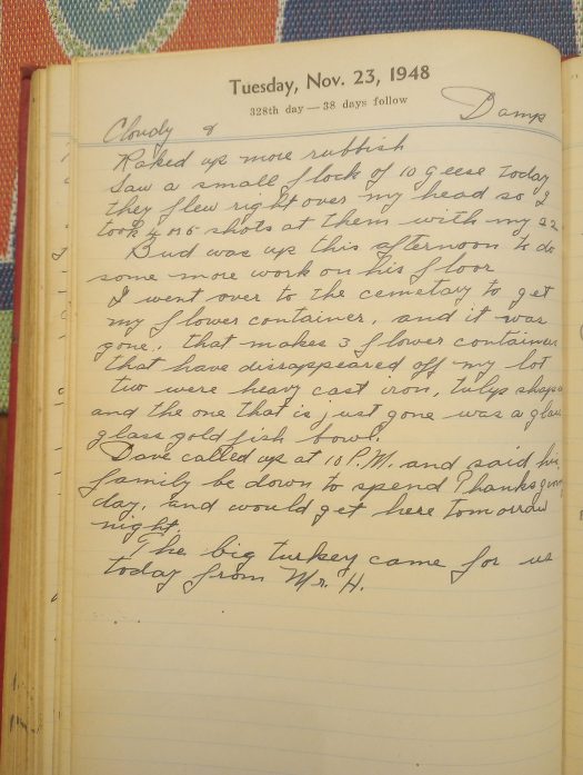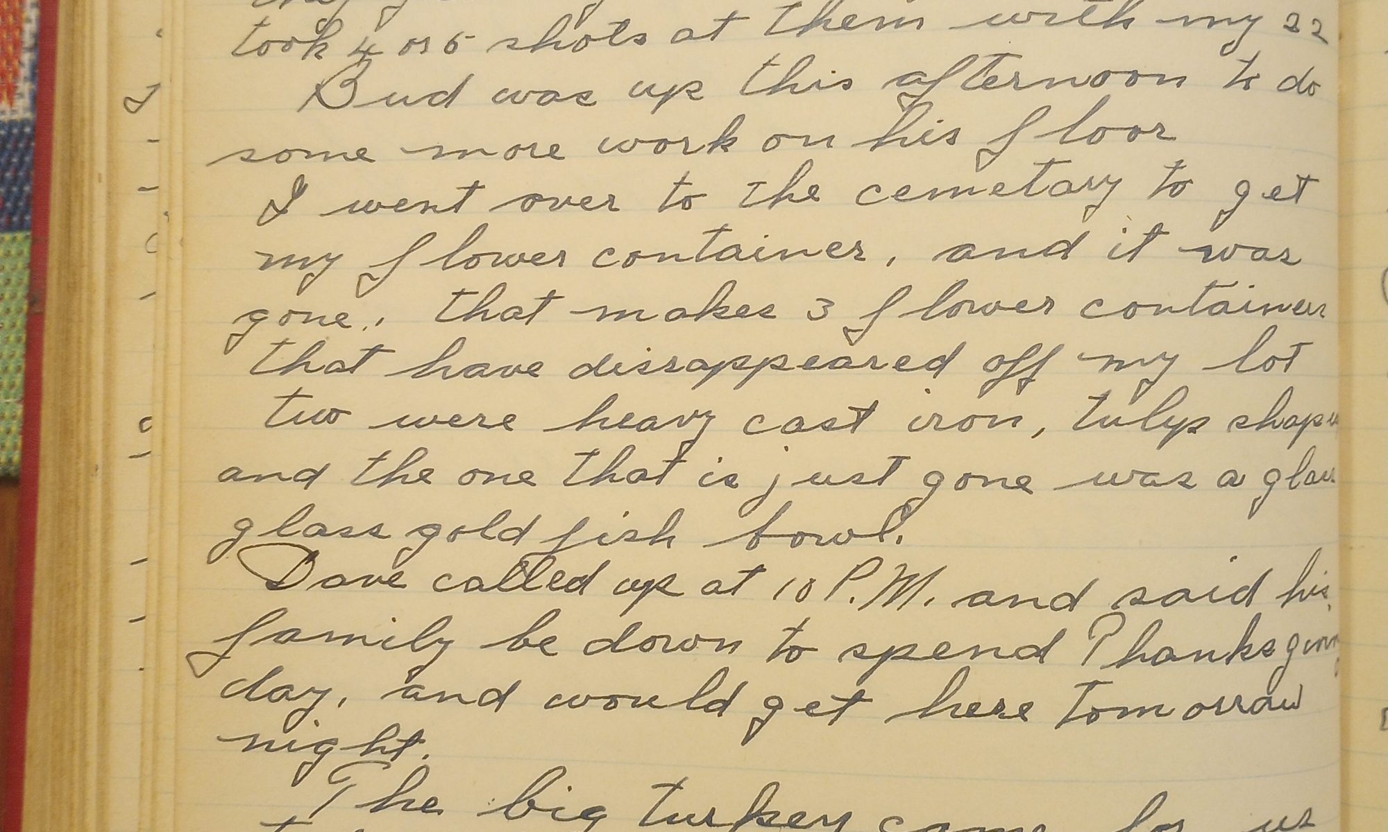 Dave called up at 10 P.M. and said his family [will] be down to spend Thanksgiving day, and would get here tomorrow night.