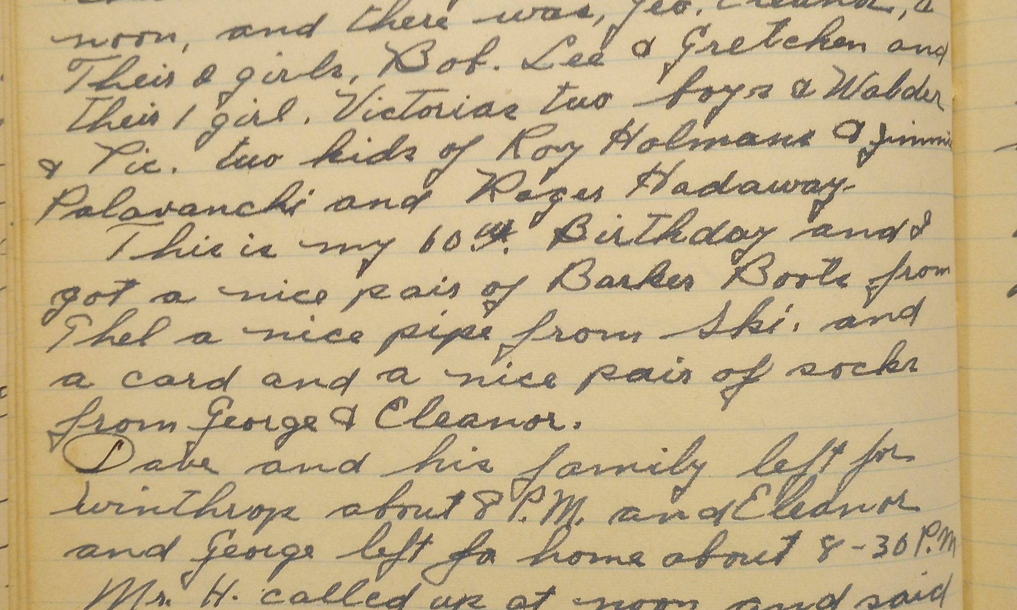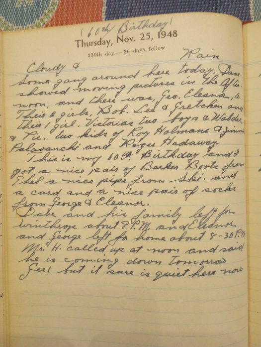 Dave and his family left for Winthrop about 8 P.M. and Eleanor and George left for home about 8:30 P.M.