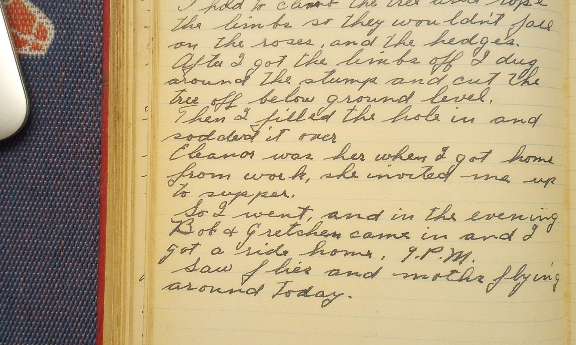 So I went, and in the evening Bob + Gretchen came in and I got a ride home. 9 P.M.