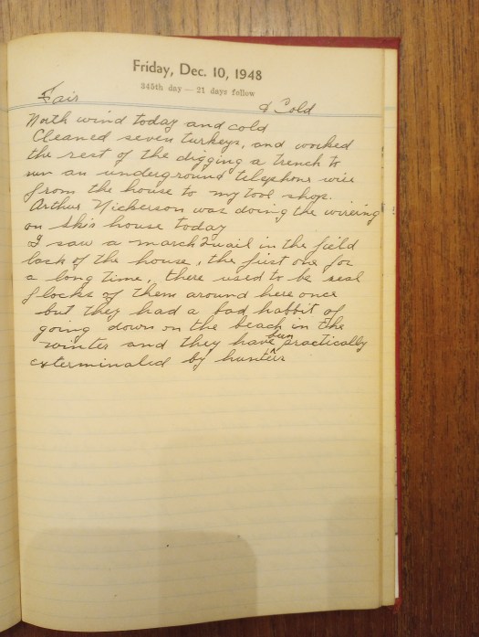 Cleaned seven turkeys, and worked the rest of the [day] digging a trench to run an underground telephone wire from the house to my tool shop.