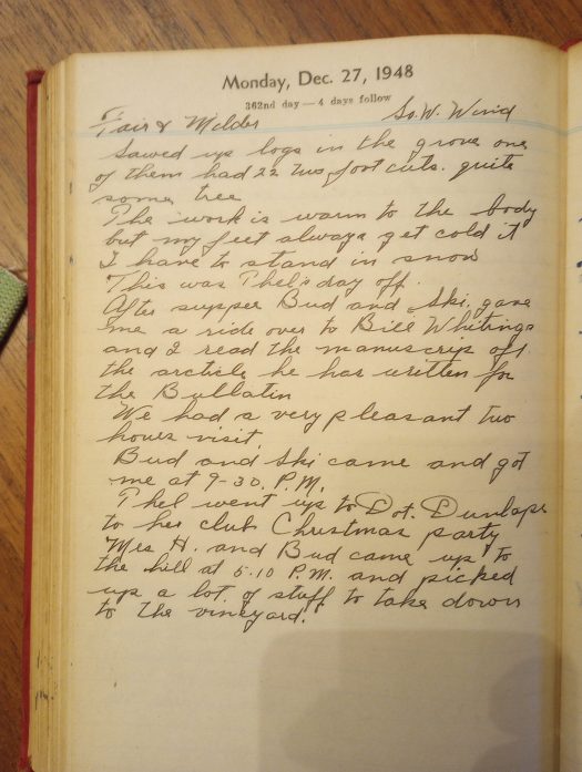 After supper Bud and Ski gave me a ride over to Bill Whiting’s and I read the manuscript off, the article he has written for the Bulletin.