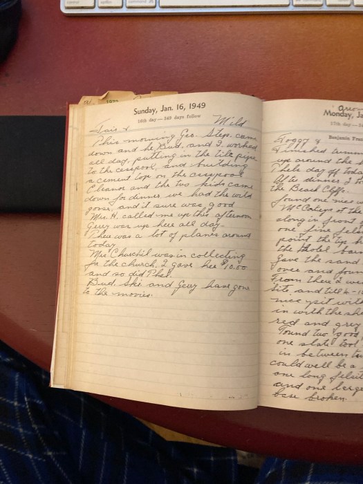 This morning Geo. Step. came down and he , Bud, and I worked all day, putting in the tile pipe to the cesspool, and building a cement top on the cesspool.