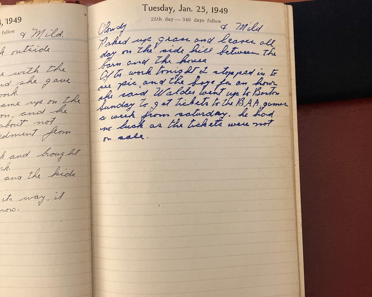 After work tonight I stopped in to see Pic and the boys for an hour. She said Walder went up to Boston Sunday to get tickets to the BAA games a week from Saturday. He had no luck as the tickets were not on sale.