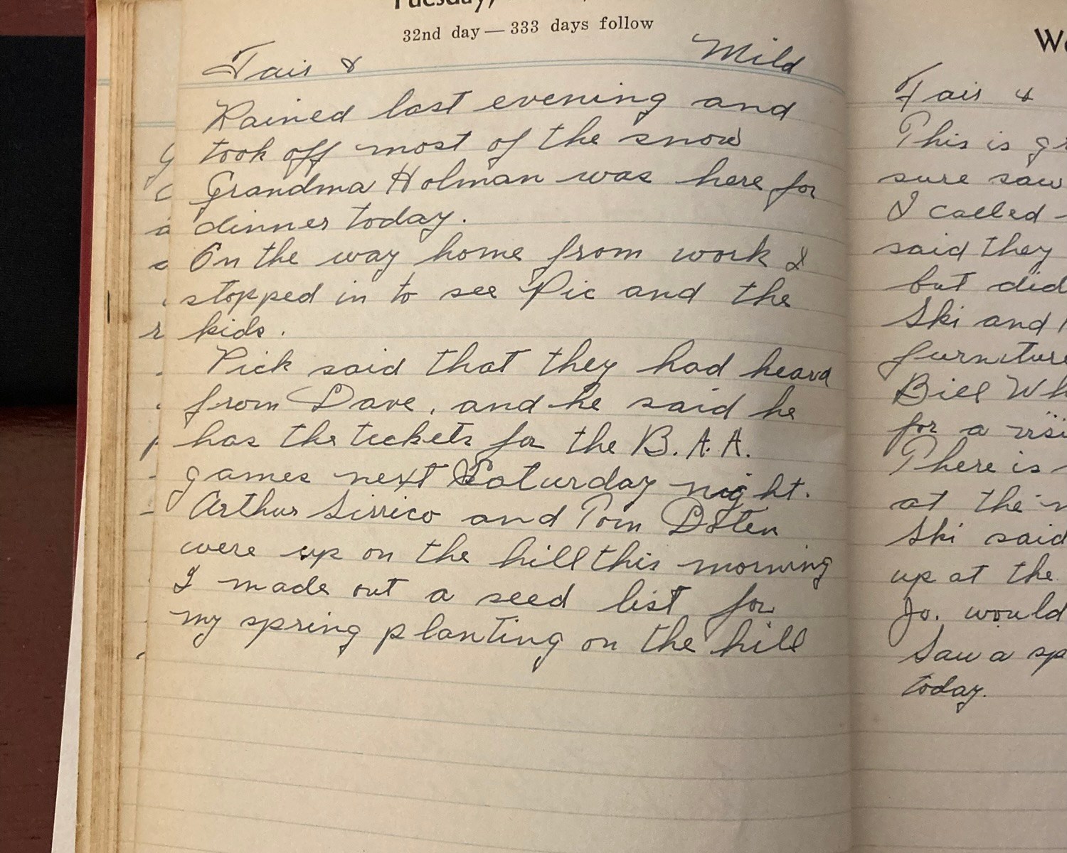 On the way home from work I stopped in to see Pic and the kids. Pick said that they had heard from Dave, and he said he has the tickets for the B.A.A. games next Saturday night.