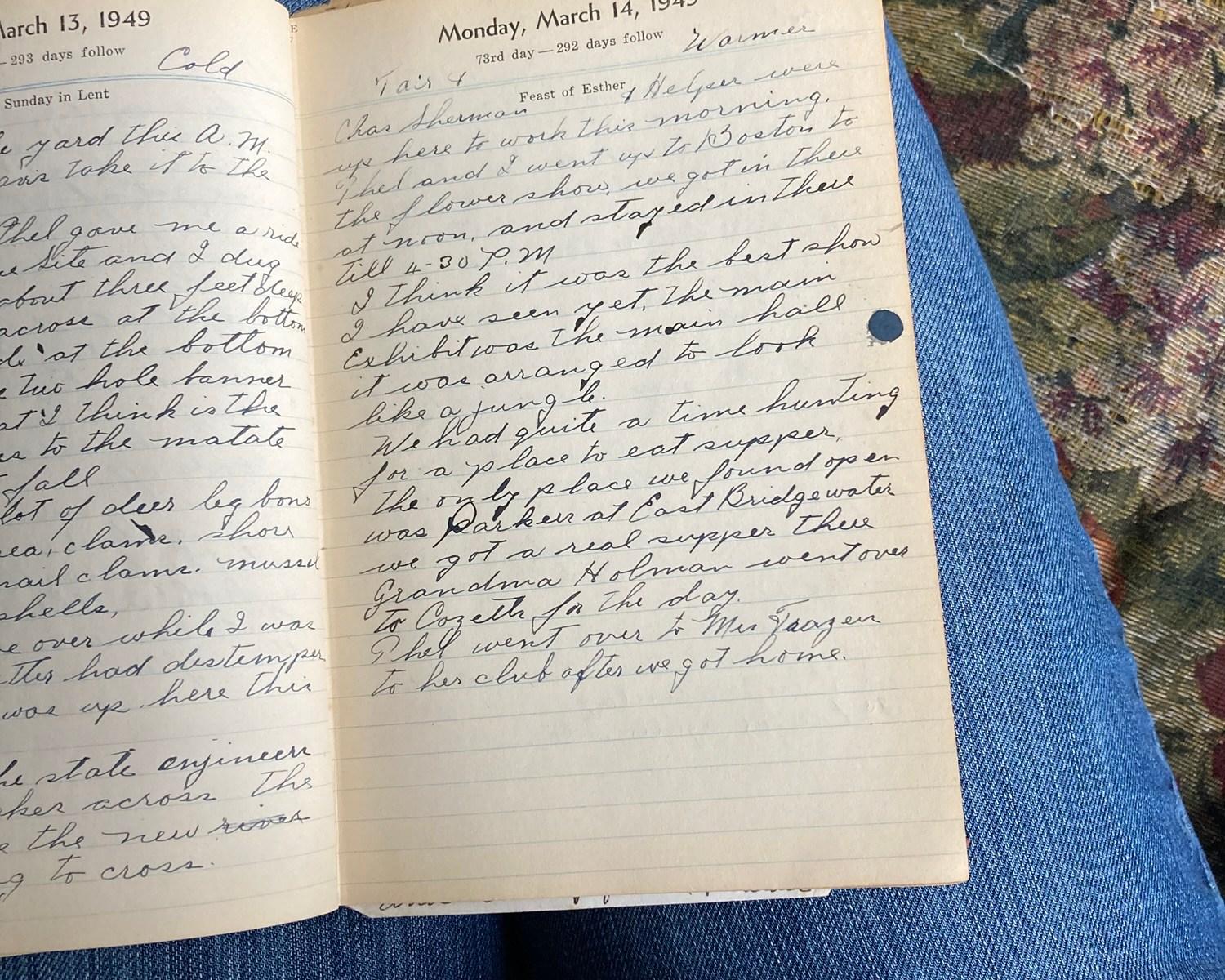 Thel and I went up to Boston to the flower show. We got in there at noon and stayed in there till 4:30 P.M.
