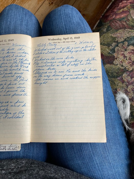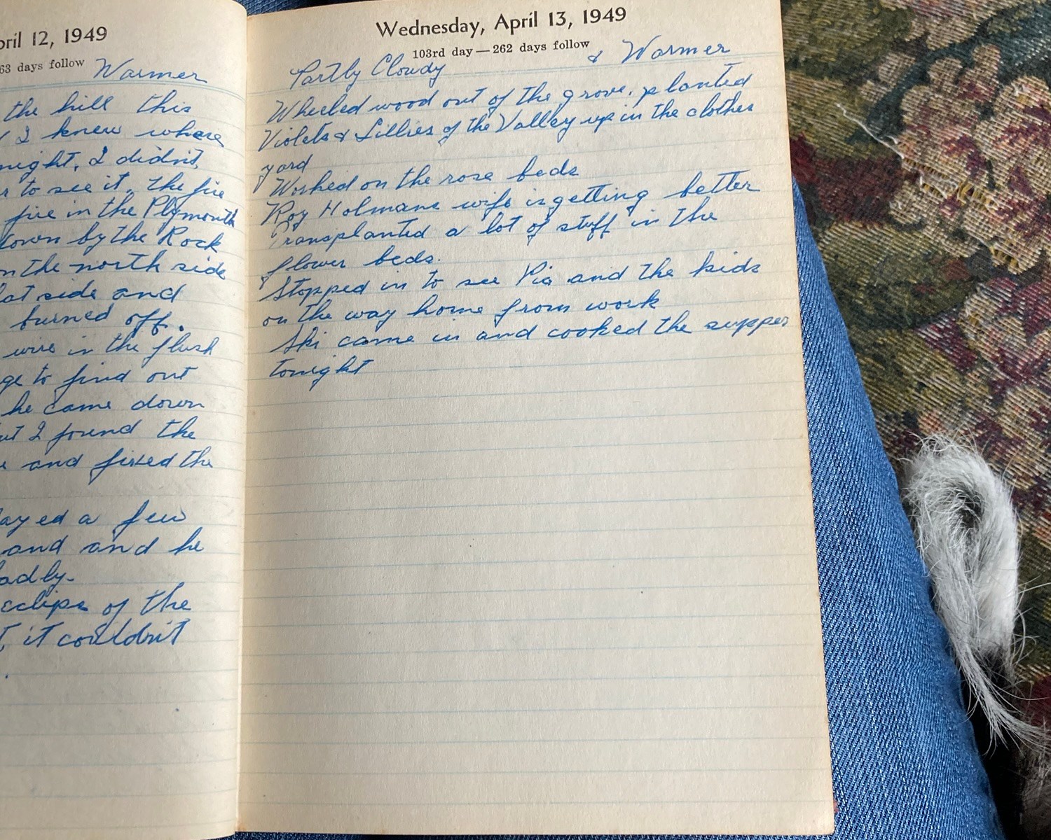 Wheeled wood out of the grove. Planted violets and Lilies of the Valley up in the clothes yard.