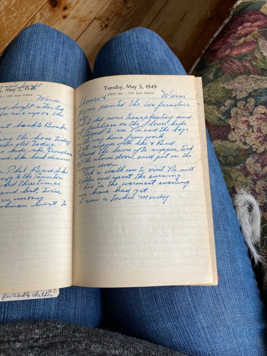 Mowed the lawn after supper, took off the storm doors, and put on the screen door.