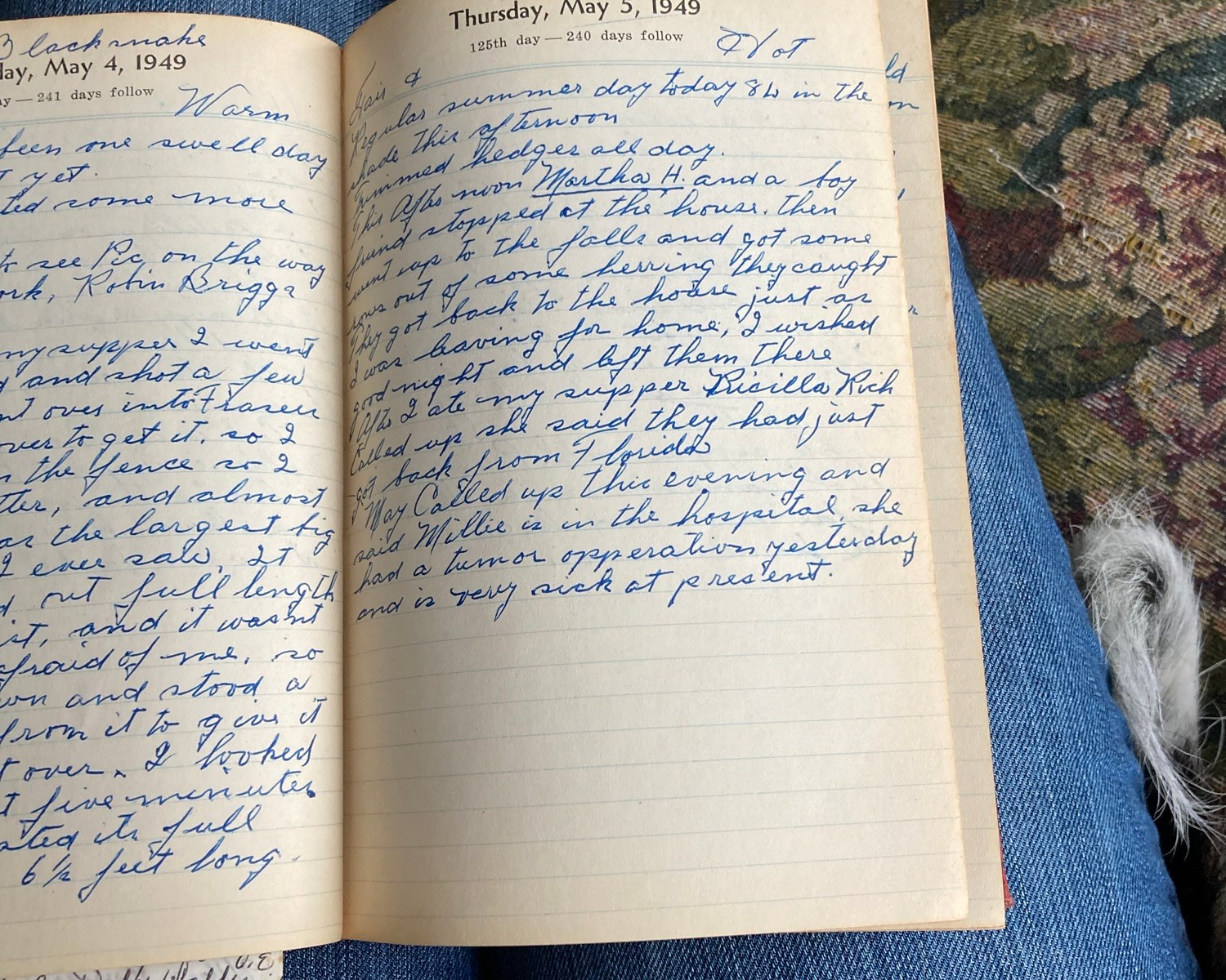 May called up this evening and said Millie is in the hospital. She had a tumor operation yesterday and is very sick at present.