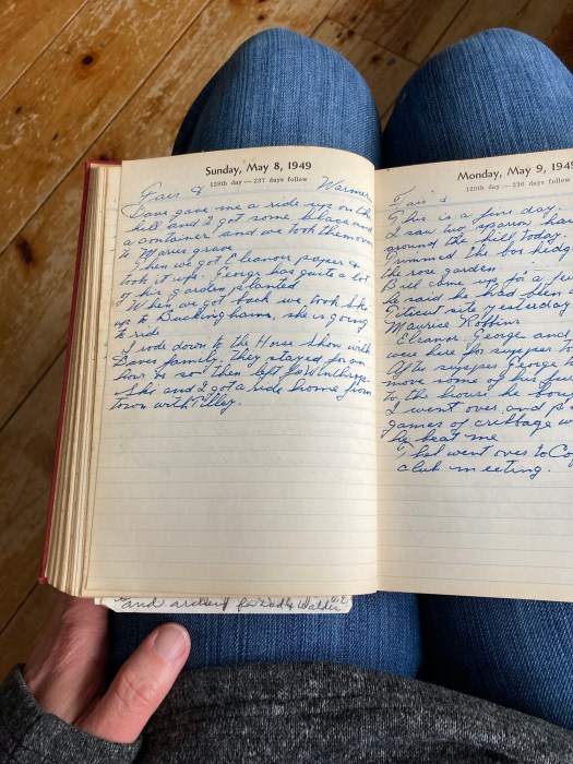 Then we got Eleanor’s paper + took it up. George has quite a lot of his garden planted.