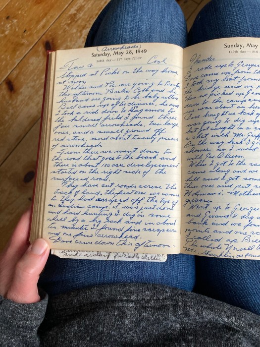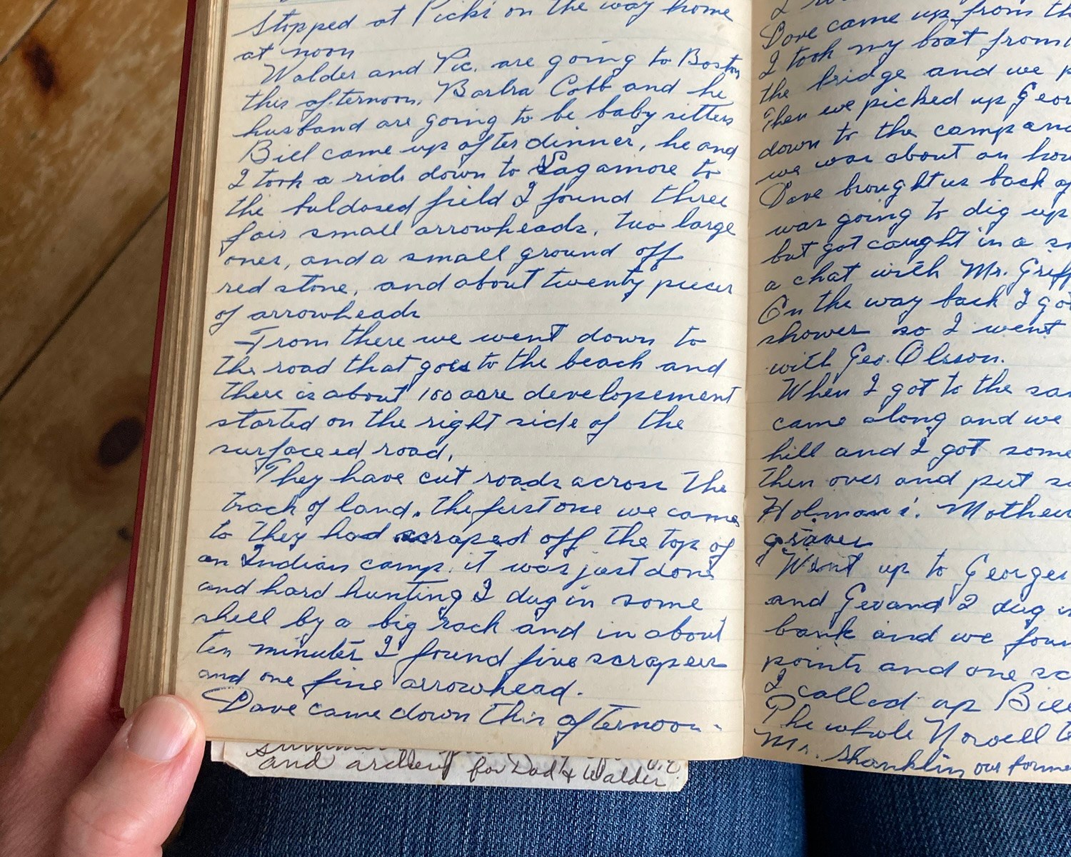 Bill came up after dinner. He and I took a ride down to Sagamore to the bulldozed field. I found three fair small arrowheads, two large ones, and a small ground off red stone, and about twenty pieces of arrowheads.