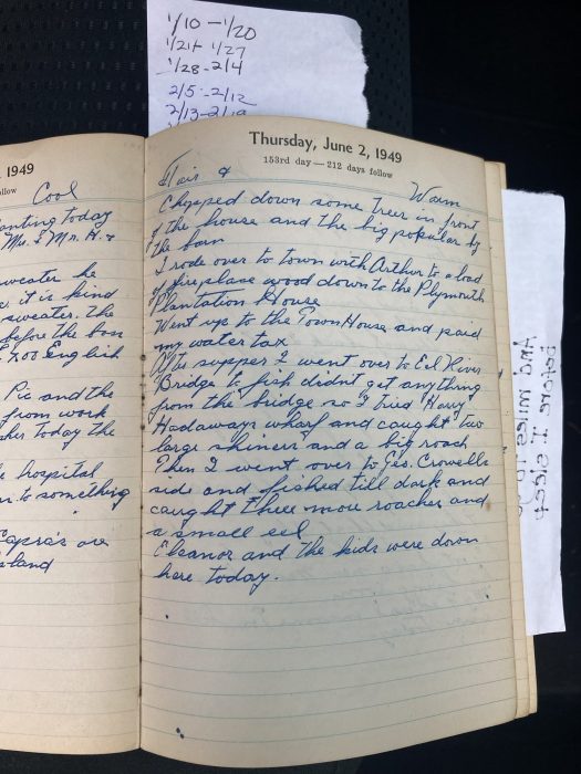 I rode over to town with Arthur to [deliver] a load of fireplace wood down to the Plymouth Plantation House.