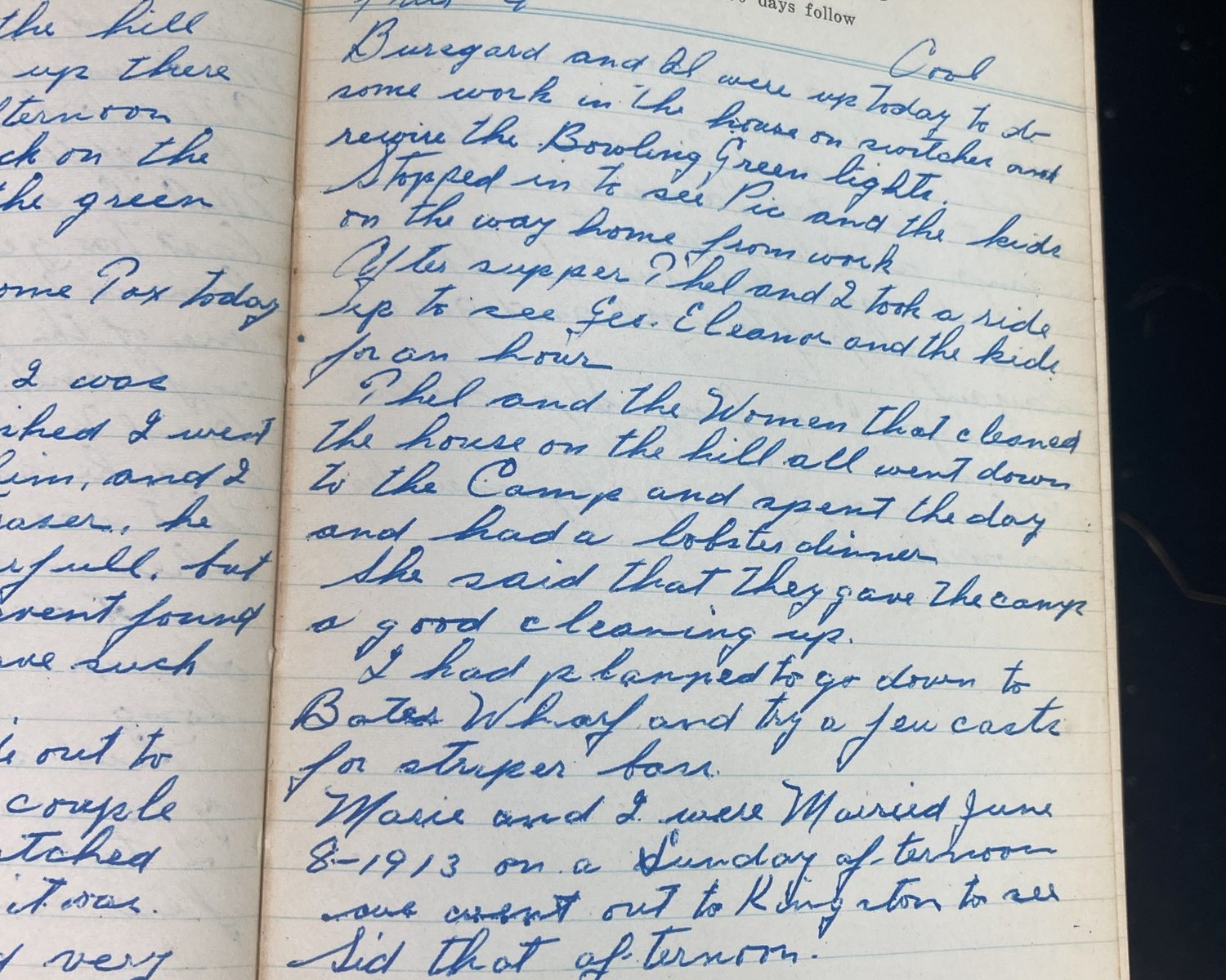 Marie and I were married June 8, 1913, on a Sunday afternoon. We went out to Kingston to see Sid that afternoon.