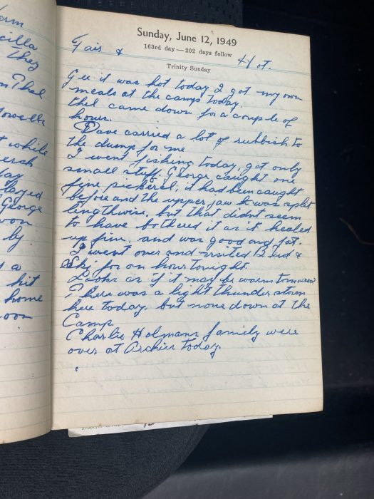 I went fishing today, got only small stuff. George caught one fine pickerel. It had been caught before and the upper jaw was split lengthwise, but that didn’t seem to have bothered it, as it healed up fine, and was good and fat.