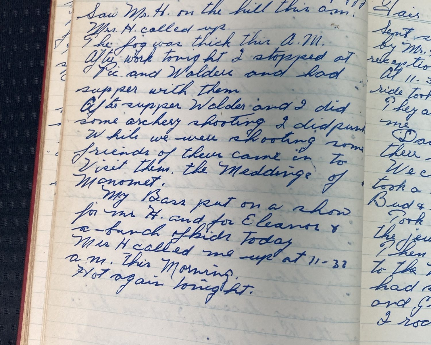 Mrs. H. called me up at 11:38 A.M. this morning.