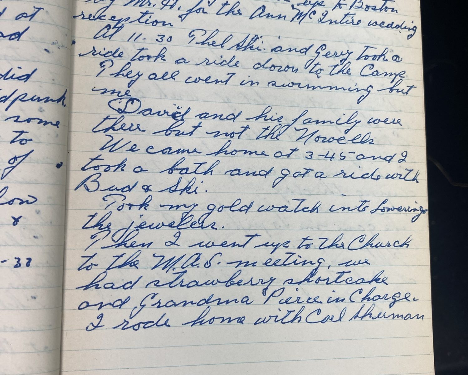 Then I went up to the church to the M.A.S. meeting. We had strawberry shortcake and Grandma Pierce in charge.