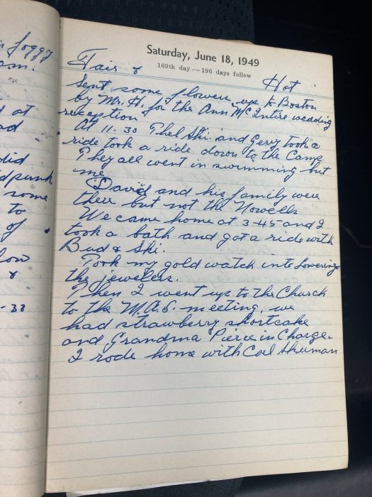 At 11:30 Thel, Ski, and Gerry took a ride down to the camp. They all went in swimming but me.