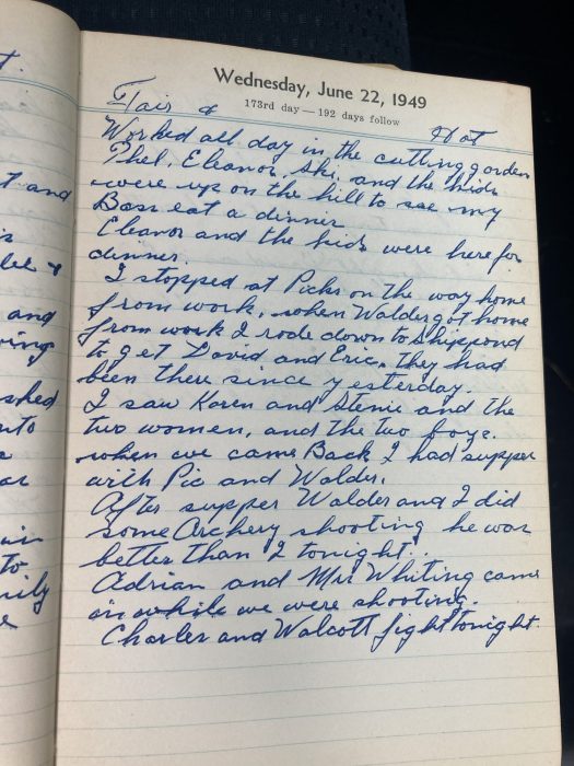 I stopped in at Pick’s on the way home from work. When Walder got home from work I rode down to Ship Pond to get David and Eric. They had been there since yesterday.
