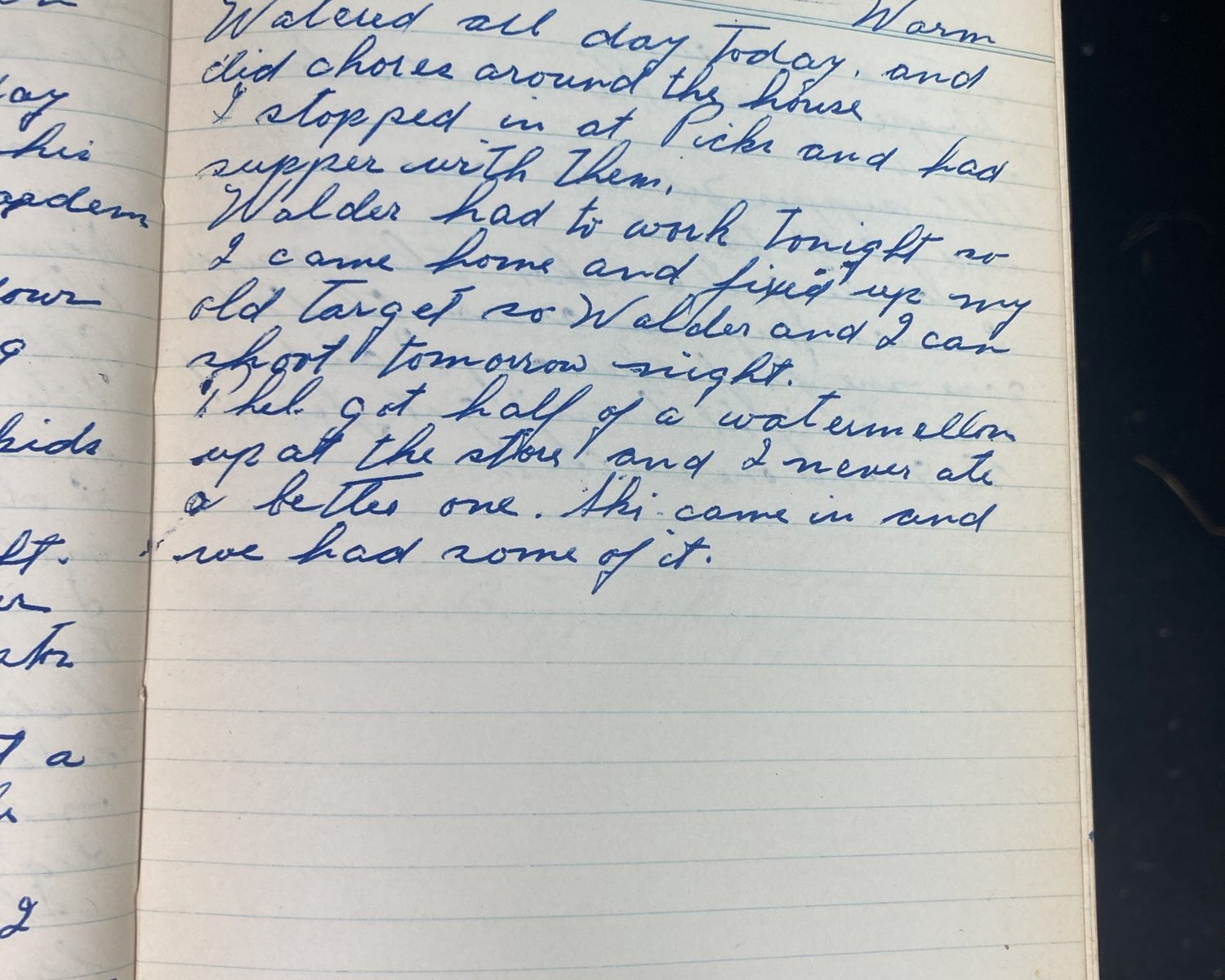 Thel got half of a watermelon up at the store and I never ate a better one. Ski came in and we had some of it.