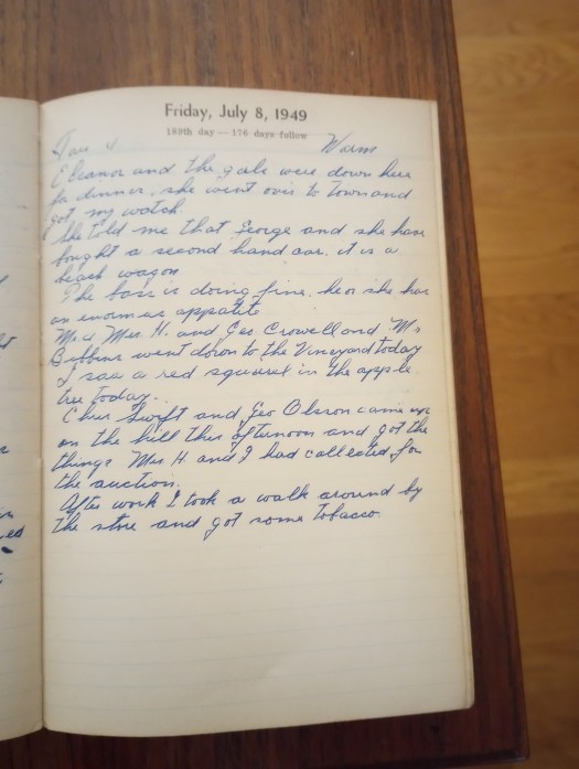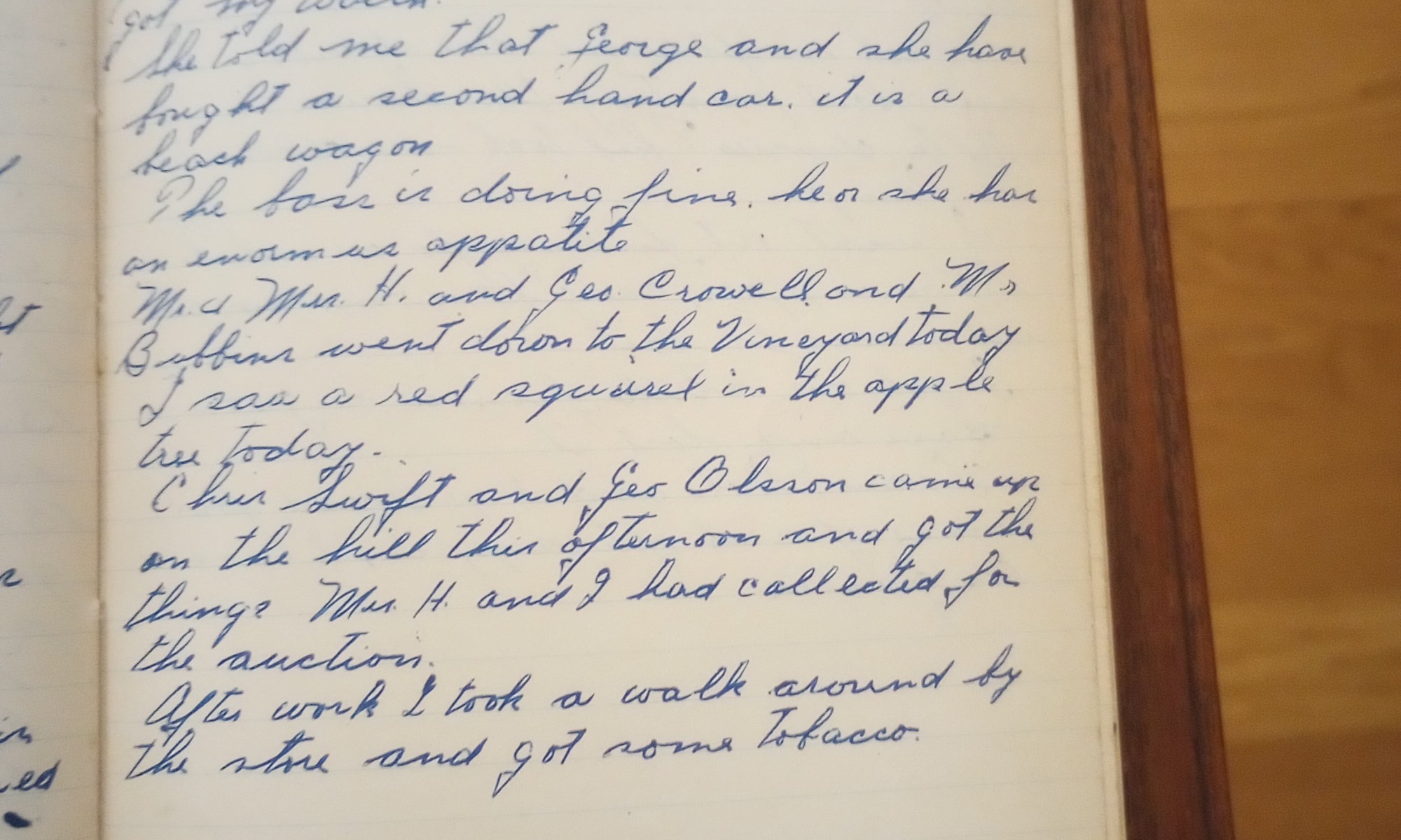 Mr. and Mrs. H. and Geo. Crowell and Mr. Bubbins went down to the Vineyard today.