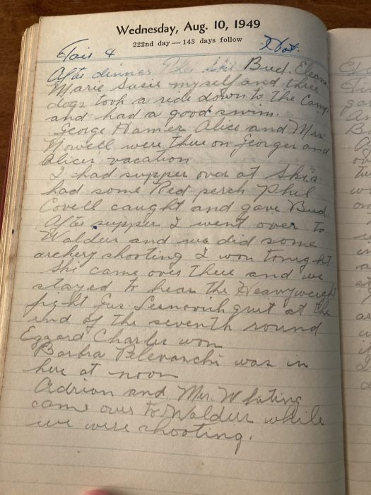 Ski came over there and we stayed to hear the heavyweight fight. Gus Lesnovich quit at the end of the seventh round. Ezzard Charles won.