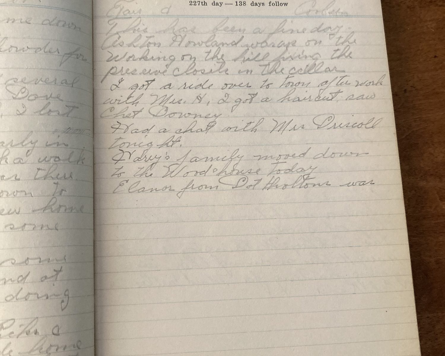 I got a ride over to town after work with Mrs. H. I got a haircut. Saw Chet Downey.