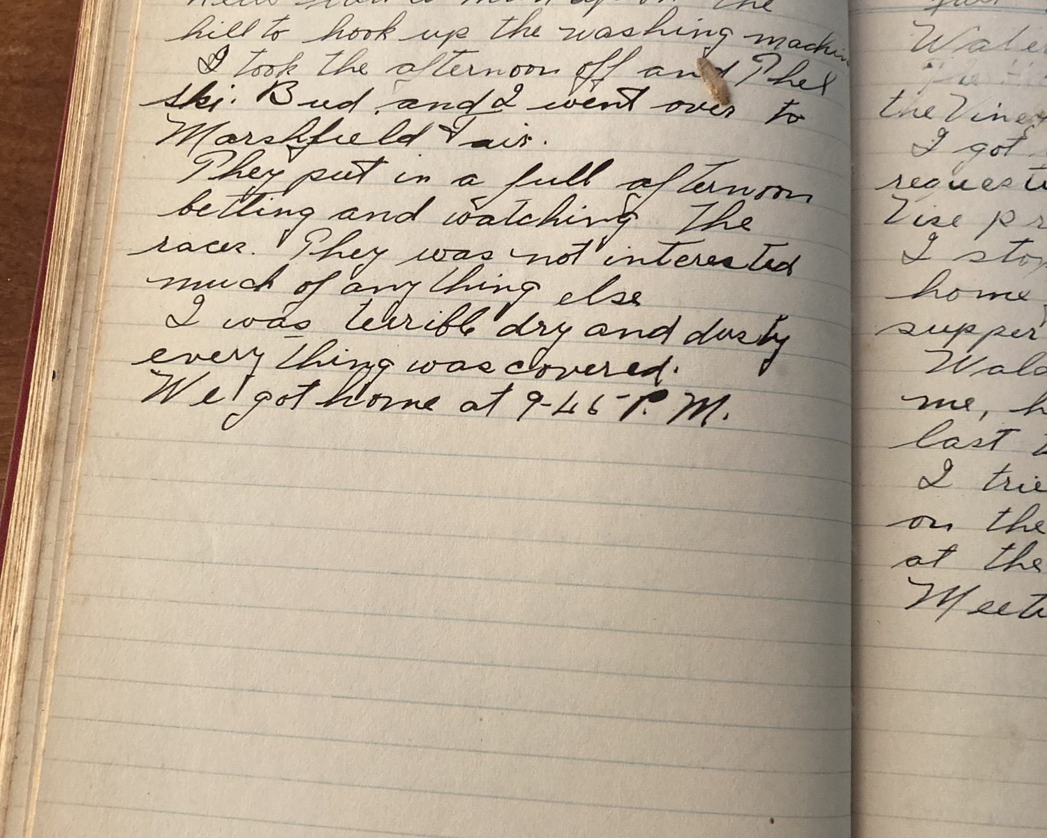I took the afternoon off and Thel, Ski, Bud,, and I went over to the Marshfield Fair.