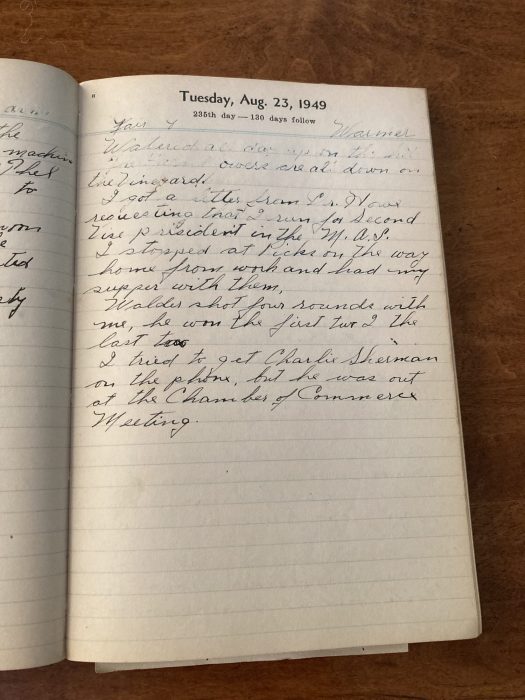 I tried to get Charlie Sherman on the phone but he was out at the Chamber of Commerce meeting.