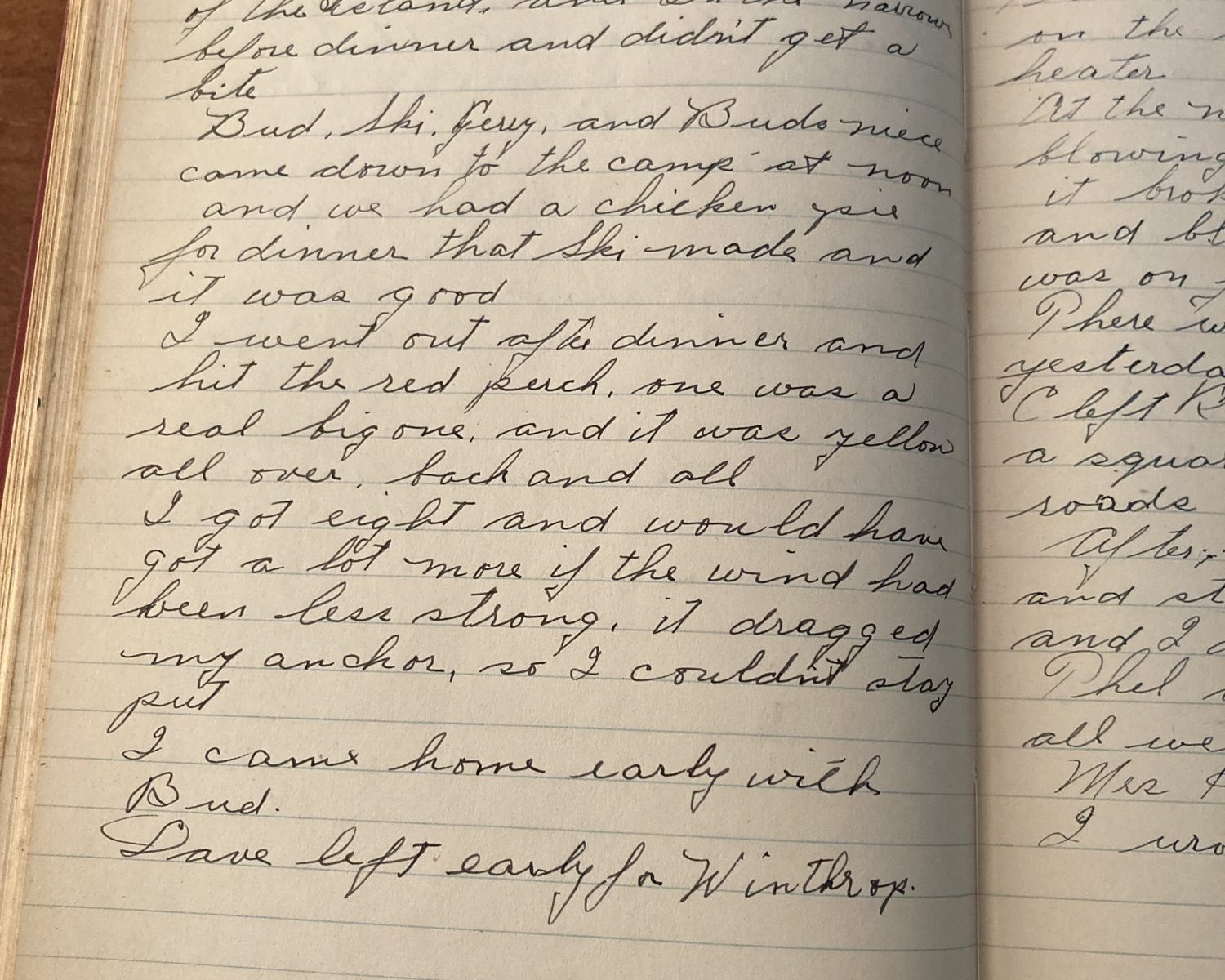 Bud, Ski, Gary, and Bud’s niece came down to the camp at noon and we had a chicken pie for dinner that Ski made and it was good.