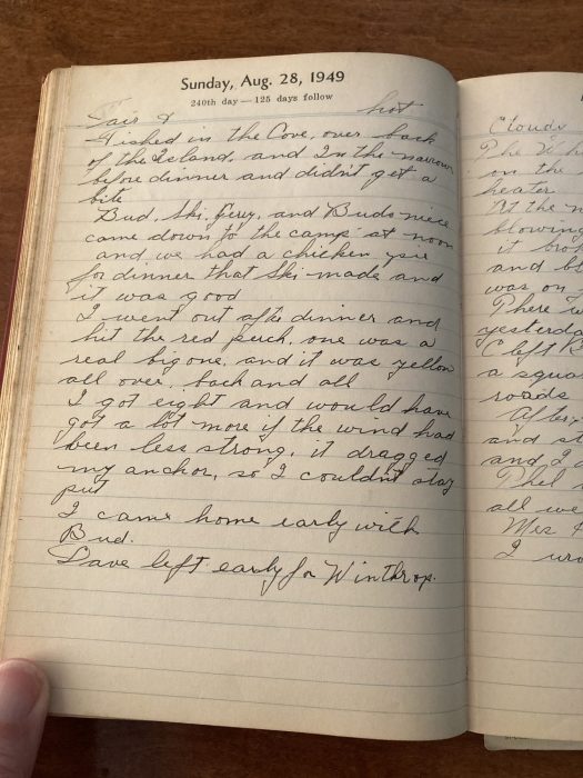 Fished in the cove, over back of the island, and in the narrows before dinner and didn’t get a bite.