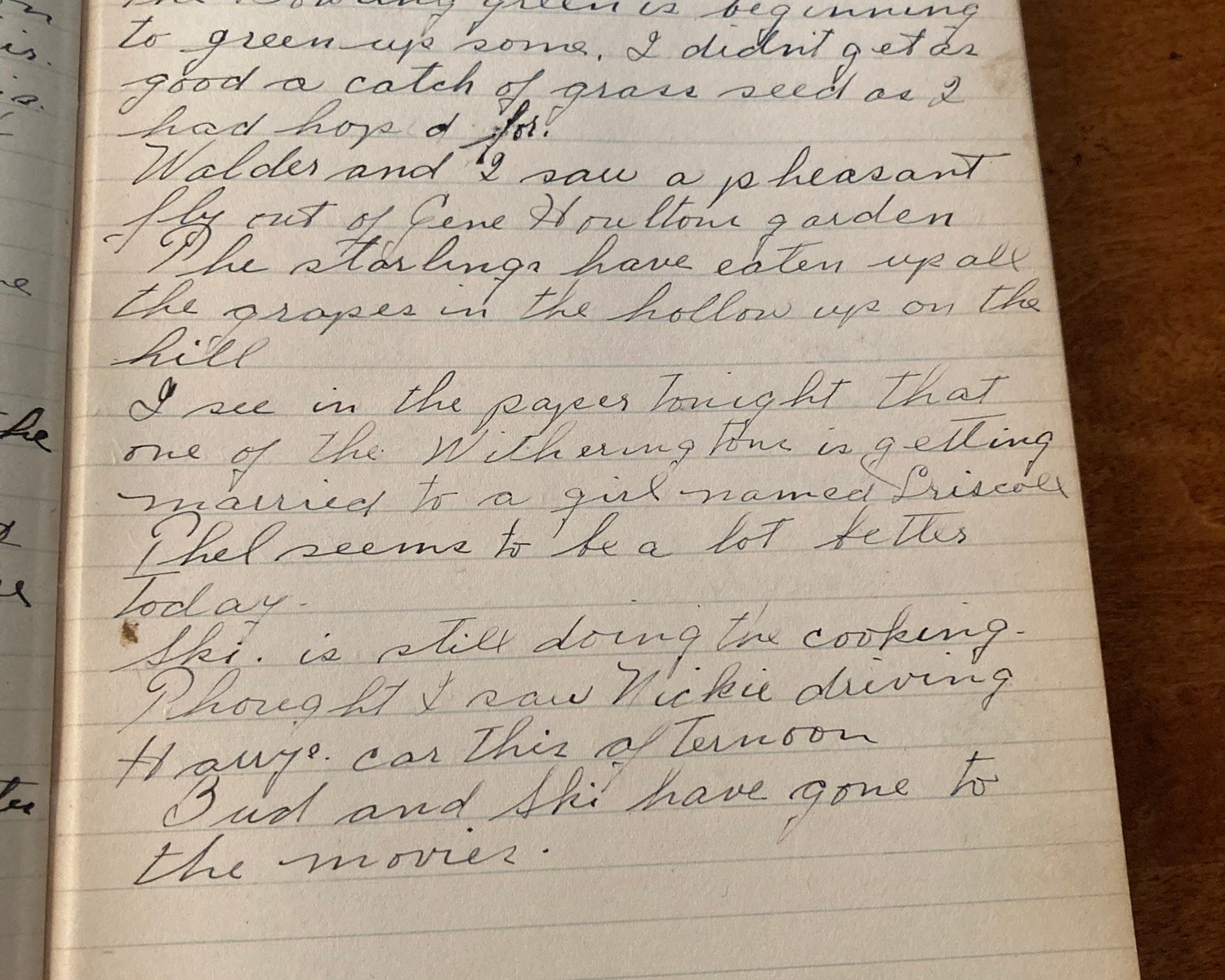 Walder and I saw a pheasant fly out of Gene Houlton’s garden.
