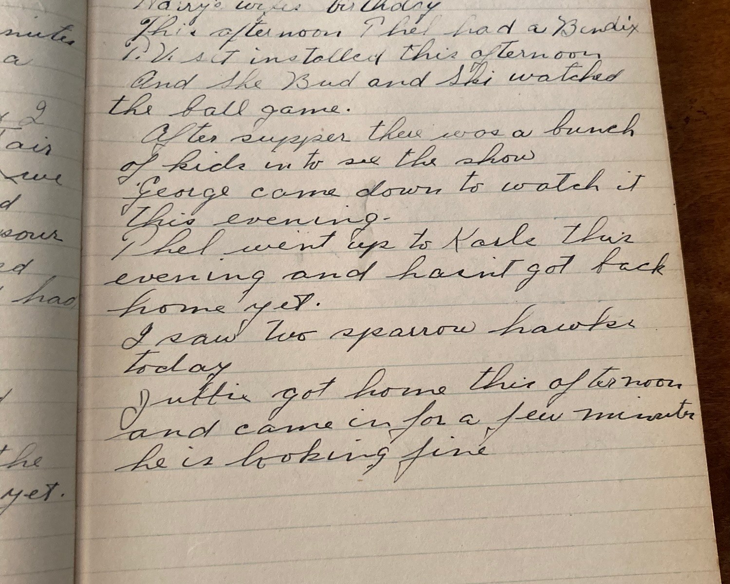 This afternoon Thel had a Bendix T.V. set installed. And she, Bud, and Ski watched the ball game.