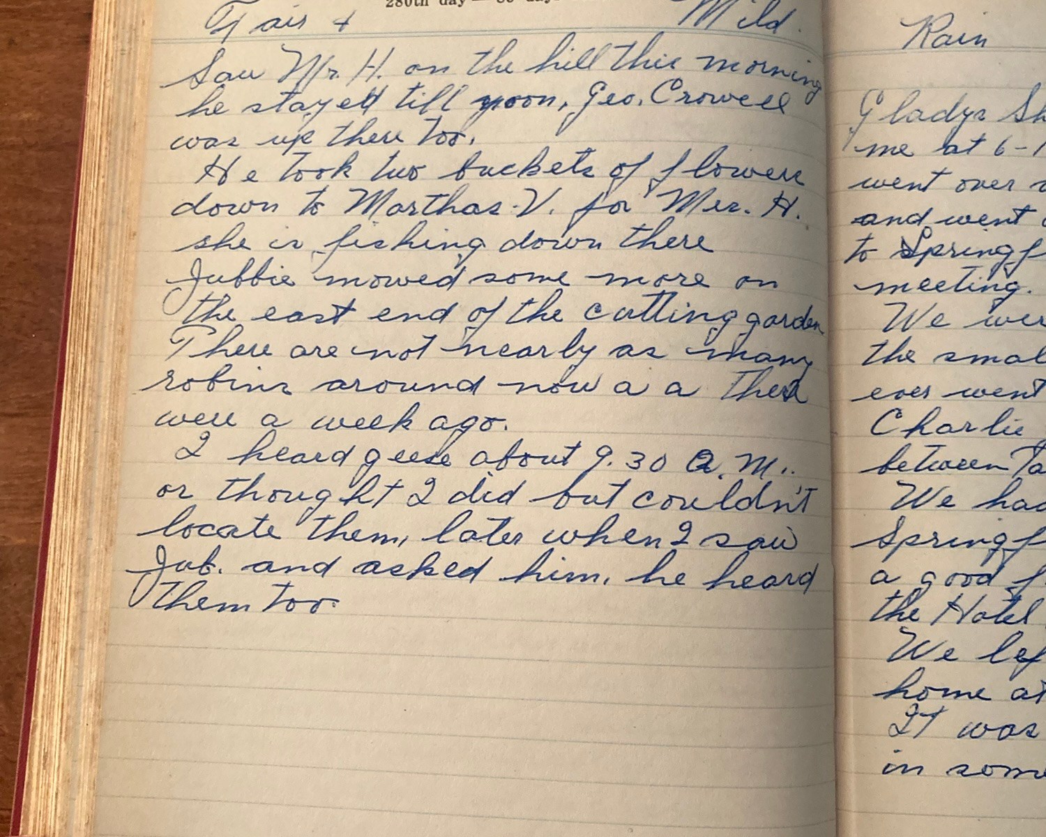He took two buckets of flowers down to Martha’s V. for Mrs. H. She is fishing down there.