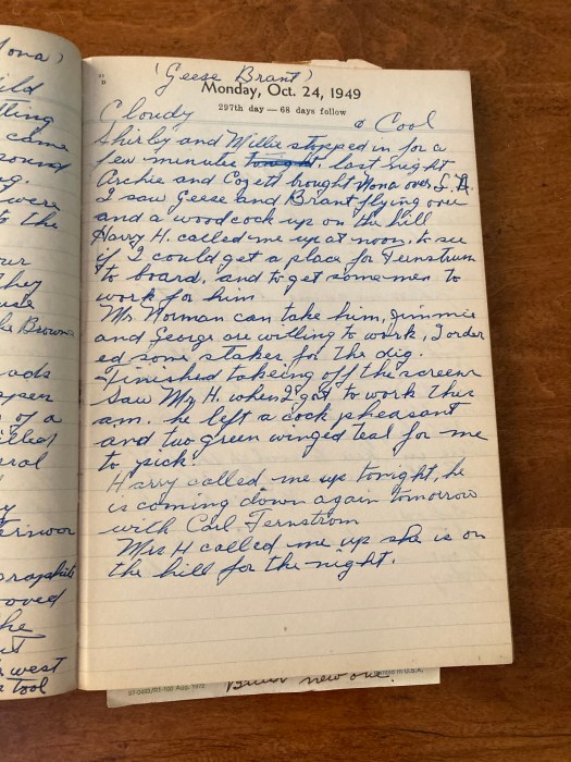 Saw Mr. H. when I got to work this A.M. He left a cock pheasant and two green winged teal for me to pick.